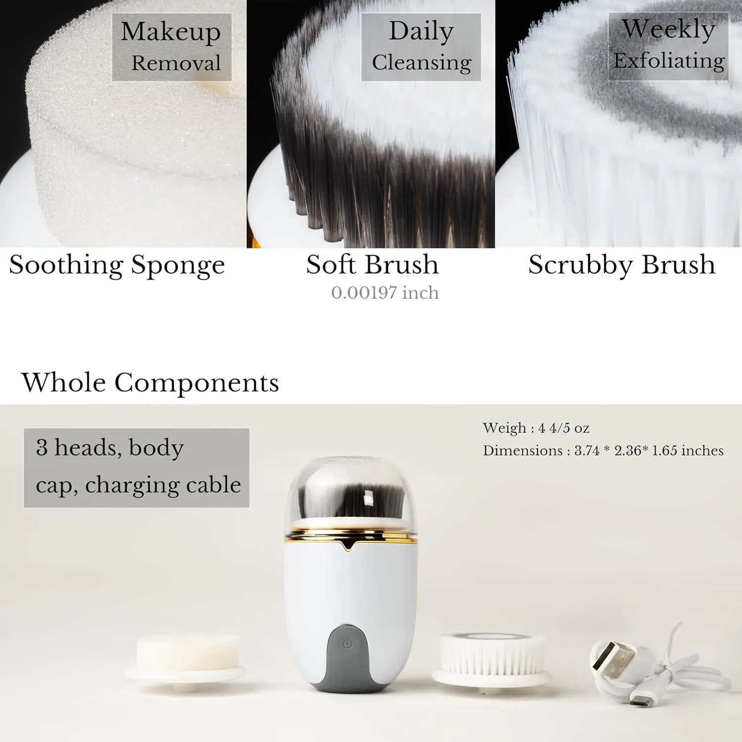 This 3-in-1 electric face scrubber provides thorough cleansing and exfoliation for smoother skin. It comes with three interchangeable cleanser heads for different skin needs. The waterproof design allows safe use in the shower or at the sink. Two-speed settings offer customizable intensity for gentle or deep cleansing. The spin brush effectively removes dirt, oil, and makeup residues from pores. Regular use promotes brighter, softer, and healthier-looking skin. Its ergonomic handle ensures comfortable grip during use. The scrubber is suitable for all skin types, including sensitive skin. It enhances the absorption of serums and moisturizers applied afterward. This versatile device offers an easy and efficient way to maintain a clean, radiant complexion.