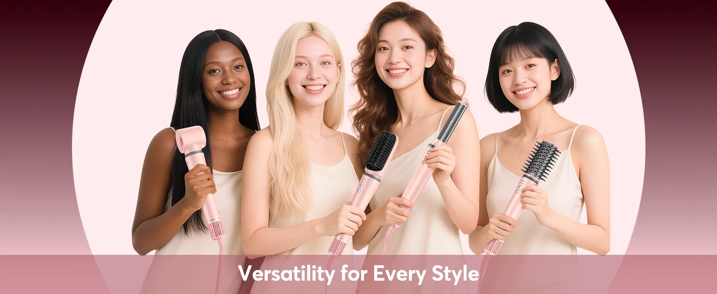 This 5-in-1 air wrap styler combines curling, drying, and straightening in one tool. It features an auto-wrap curler for effortless curls. The high-speed hair dryer dries hair quickly while reducing frizz. Its straightening brush smooths and tames unruly strands. The blow dryer brush adds volume and shape to hair. Multiple attachments allow versatile styling options. It works on all hair types safely. The ergonomic design ensures comfortable handling. Daily hairstyling becomes faster and easier. This device delivers professional-quality results at home