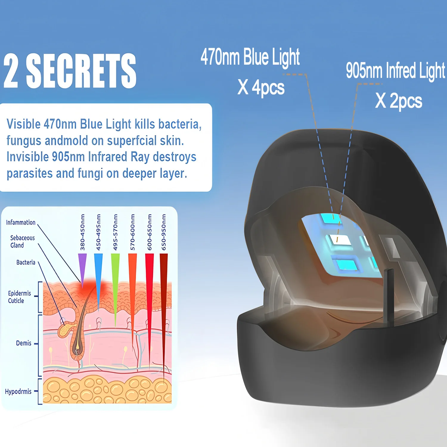 This black fungal nail laser device offers an effective solution for removing stubborn nail fungus. It uses targeted laser technology to penetrate the nail and eliminate fungus at the source. The treatment is gentle, painless, and safe for regular use. Consistent use helps restore the appearance of damaged toenails and fingernails. The device supports the natural healing process, encouraging healthy nail growth. Its compact design makes it easy to use at home or on the go. The tool helps reduce discoloration, brittleness, and thickening caused by onychomycosis. It is suitable for both mild and severe fungal concerns. The simple operation makes it accessible for anyone seeking foot or nail care. With continued use, this laser device promotes cleaner, clearer, and healthier nails.tool,
