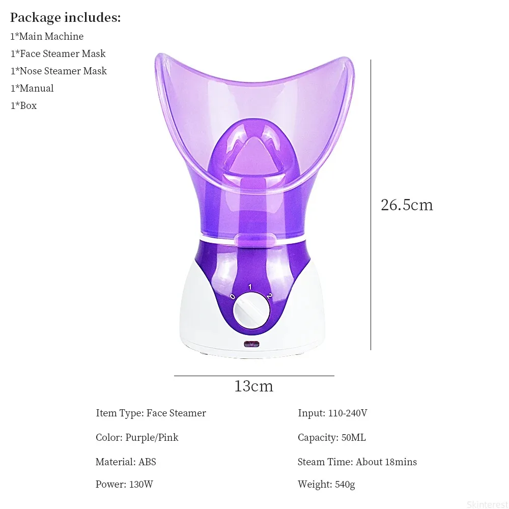 This facial steamer provides soothing hot mist to deeply hydrate and refresh your skin. It helps open pores for effective cleansing and removal of dirt, oil, and impurities. The device promotes